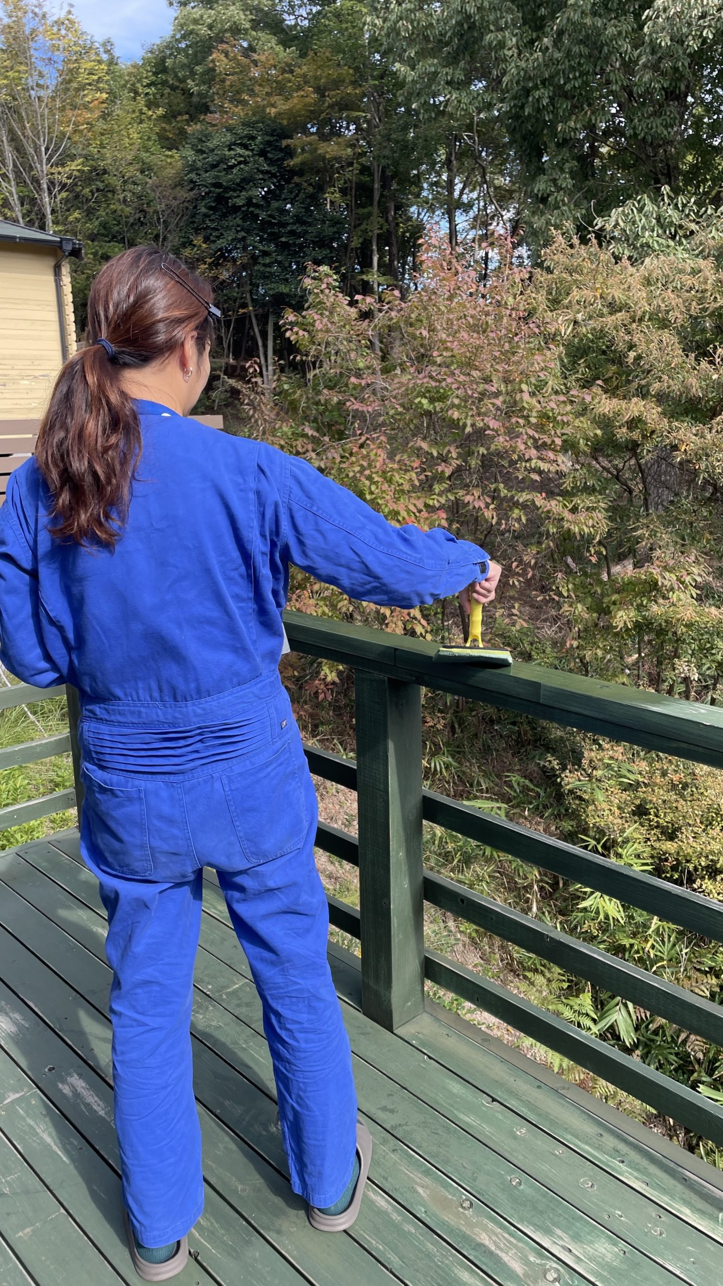 標高の高い山奥に暮らす我が家は、冬の訪れが早い!冬が始まる前に急がねば!!と焦る日々のなか、ようやく晴れの続くタイミングでペンキ塗り開始!(^^)少し前に表面にやすりをかけていたので、今回は塗るところから開始!