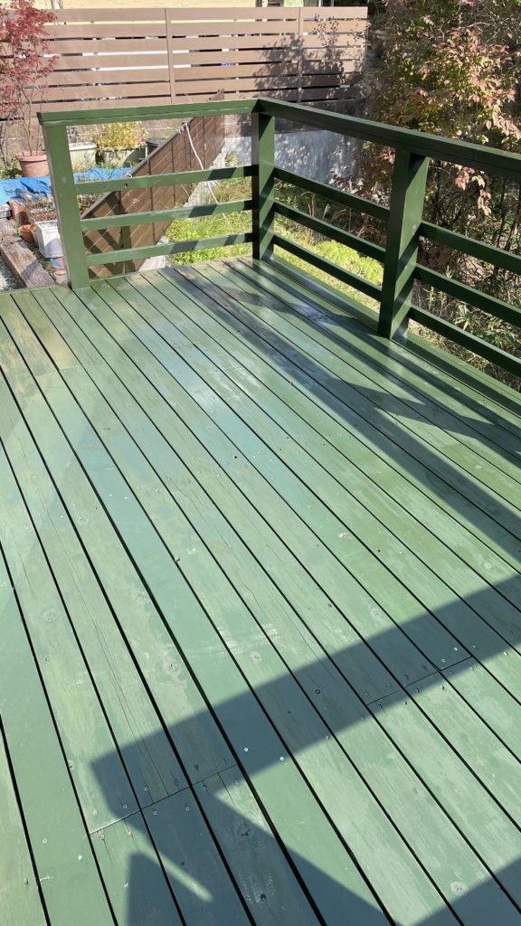 デッキの下を塗るのが本当に大変”(-“”-)”私は子供のお迎えがあり、開始1時間で撤退。