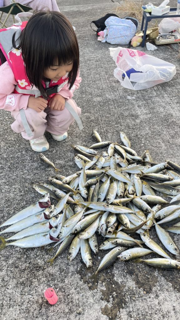 この日も子供達とサビキ釣りを楽しみました🤗まぁ〜ものすごい数の鯵が沸いてました🐟
